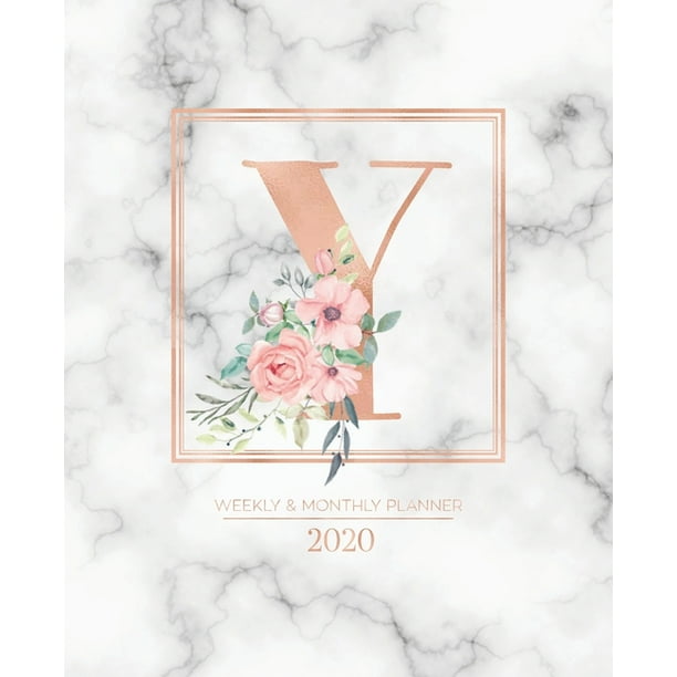 Weekly Monthly Planner 2020 Y Rose Gold Marble Monogram Letter Y With Pink Flowers 7 5 X 9 25 In Horizontal At A Glance Personalized Planner For Walmart Com